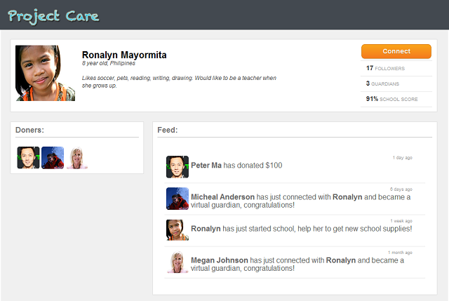The idea is to bring greater transparency and personal connection to child sponsorship by giving you a more direct connection with the kids you sponsor via video conferences. Plus once you start sponsoring child, you can also connect with other people who sponsor the same child or children that you sponsor. It uses OpenTok for video conferencing (with the option to save video chats to Dropbox), Stripe for payments and DocuSign for agreements.