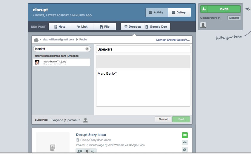 With the service, people create “dispatches” that serve as a place to privately post and discuss links, notes, and files. Dispatches can be for any kind of project. Its value is in serving as a central hub to share from different cloud services. Additional cloud providers will be added over the next few months.