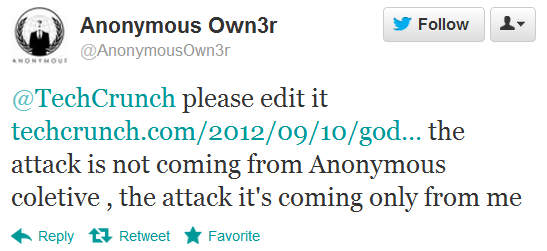 Last year GoDaddy was pressured into opposing SOPA as customers transferred domains off the service, and the company has been the center of a few other controversies. However, AnonymousOwn3r has tweeted “I’m not anti go daddy, you guys will undestand because i did this attack.”