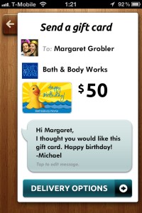 There are several nice touches in the app, like the way it can sort your Facebook friends list by birthday or name, and the (patent-pending) way you “scratch” off the strip on the back of a virtual gift card to reveal the number. To kick off its launch at Disrupt, Gyft is offering more than $250,000 in free gift cards from retailers, including Sephora, Amazon, Lowe’s, Brookstone, Toys “R” Us, and more, which will be given out to users just for downloading the app, as well as from retailers who want you to promote them on social networks (e.g. a Facebook “like”) in exchange for a card.