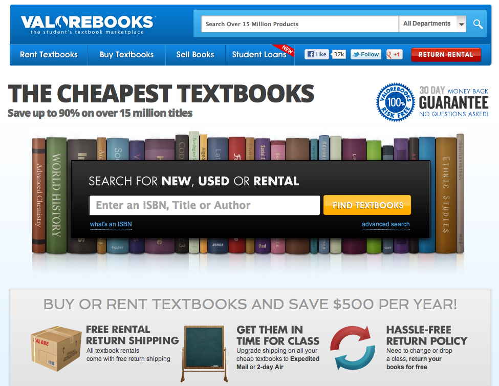 ValoreBooks has done well to survive in a crowded textbook rental and sales marketplace since 2002. It’s interesting also to note that we’ve been seeing some consolidation in the textbook marketplace and bigger players moving to beef up their services and move beyond textbooks. Chegg, especially of late, has been loudly expanding its repertoire beyond textbooks, pushing to become an “academic hub.” Gone is any marketing that leads with “textbooks.”
