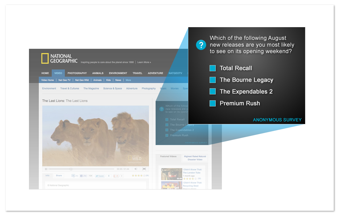 TubeMogul‘s new BrandSights surveys, by contrast, provide a way for advertisers to compare important metrics — like brand awareness and purchase intent — between users who have seen video ads and those who haven’t. BrandSights works like this: Surveys are served up in standard display 300×250 display ad units, and prompt users to answer a single question, which aligns with a certain metric.