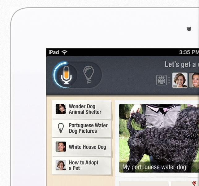 What’s that old adage about learning to walk before you can run? Yeah, that. When the voice-only iPad app launches next month, it will support up to eight people, but it won’t yet be ready to predict what might come up during your conversations. For now, the app will retrieve information based on your conversation that you trigger within the app as topics of interest come up. It will also pull in Facebook information when users sign up for the service. Other services like LinkedIn will eventually be integrated as well.