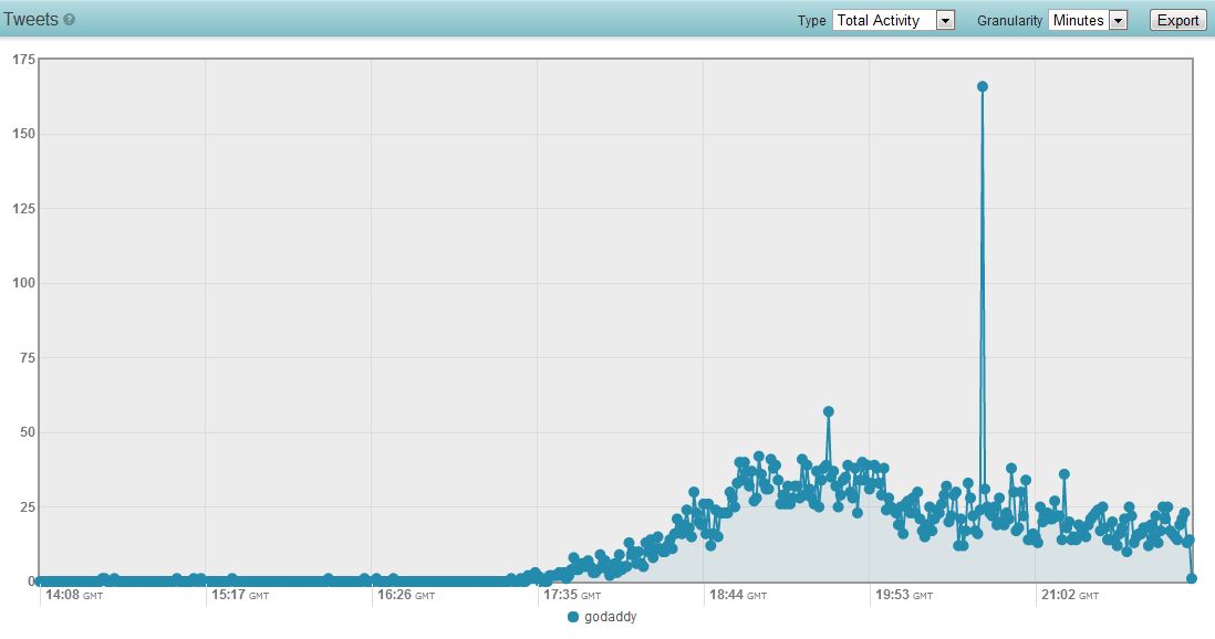 Here’s a graph of mentions of GoDaddy on Twitter: