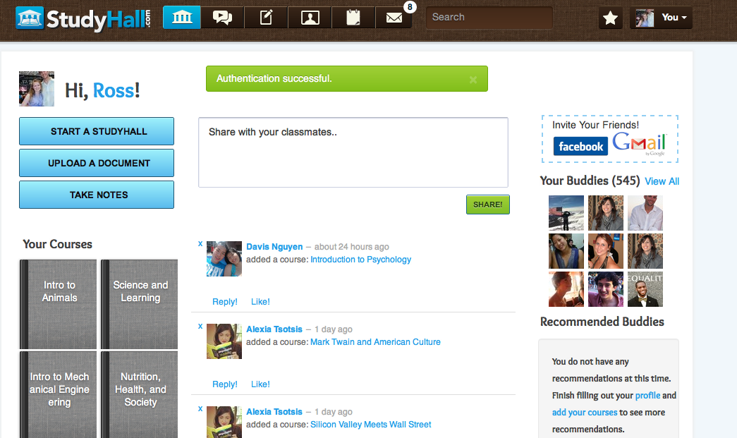 You might think of Studyhall as a “Yammer for students,” as Studyhall founder and CEO Ross Blankenship tells us that the idea for the company grew out of his experience as a student and the perceived frustration among his peers with how difficult it remains for students to find their classmates, connect, study and collaborate on assignments without using one hundred different channels. Really, students don’t have a network or tool that they love to use that is academically-focused but not buttoned-up (overseen aggressively by teachers), etc.