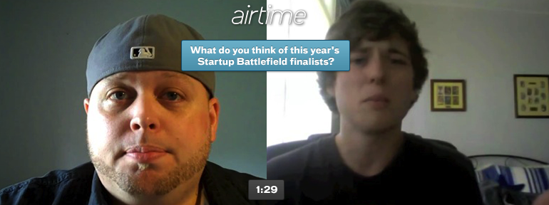 How often do you finish reading an article and want to chat about it with someone right away? Especially if it’s a politics piece that I feel strongly about, I’ll be feverishly curious about how anyone could possibly disagree with the argument. Well, now you can find the perfect debate or conversation partner: video chat pairing service, Airtime, has launched topic-specific chatrooms exclusively for TechCrunch. The experimental feature will allow our readers to debate who should win our startup competition, the Battlefield, at our annual San Francisco TechCrunch Disrupt conference. The winners will be announced later this afternoon.