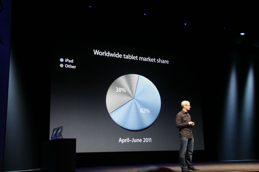The iPad now accounts for 63% of the worldwide tablet marketshare between April and June — at least according to Apple’s numbers.