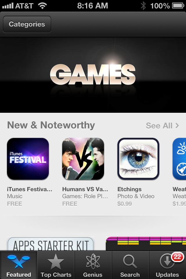 First, the new look: in iOS 6, the App Store application has removed the “Categories” button from the app’s main screen, in favor of “Genius.” This is a remarkable change, when you stop and think about it, as Apple is now directing users to trust in Apple’s search and recommendations over category browsing. It’s a move that’s almost reminiscent of the time when we stopped locating websites via directories, and turned to search engines instead. With some 700,000+ applications in the App Store, now seems to be a good time to begin directing users to new discovery mechanisms as well.