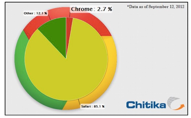 It’s unlikely that Apple will give users the option to make a third-party browser the default browser on iOS anytime soon. Still, almost 15% of all the iOS web traffic to Chitika’s network comes from third-party browsers.