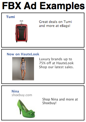 Retargeting has long been used around the web by ad providers like Google, but is new to Facebook. Now FBX ads are running in the right sidebar of Facebook’s desktop website, mixed in with ads targeted by biographical information and interactions with brands by a viewer or their friends.