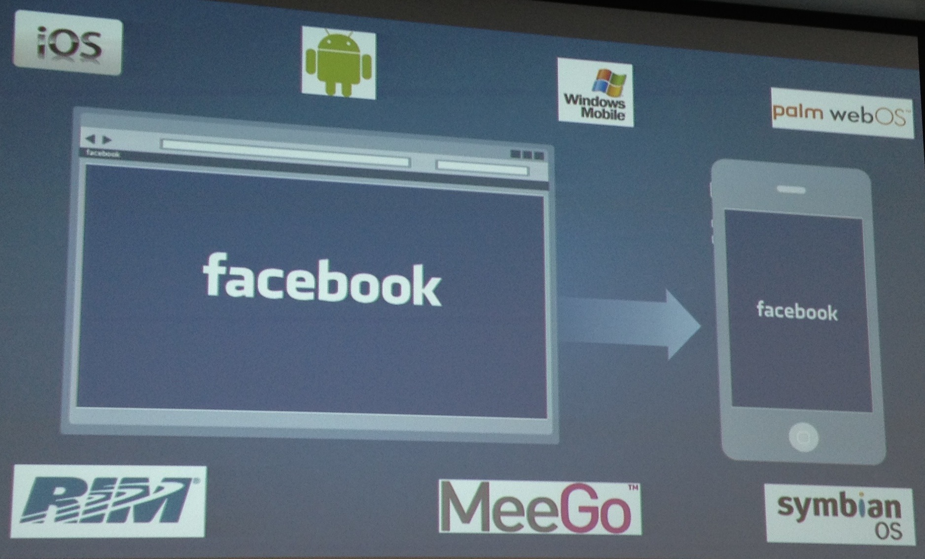 Facebook platform head Doug Purdy explained that “People think ‘it’s HTML5 or Native’, but its ‘And’.” That’s because the HTML5-powered m.facebook.com is critical for dealing with mobile fragmentation. “There’s no way we’re gong to build native applications for 7,000 devices,” Purdy said. That’s why it will continue pushing mobile browser vendors to use its Ringmark HTML5 testing standard and improve camera access, graphics, and speed.