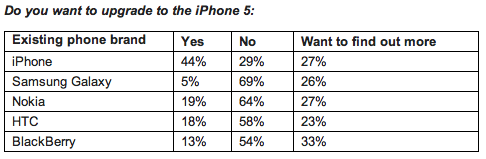 According to the poll, 18% of current HTC smartphone owners in Britain want the new iPhone, too, while Nokia fared even worse with 20% of owners displaying iPhone 5 lust.