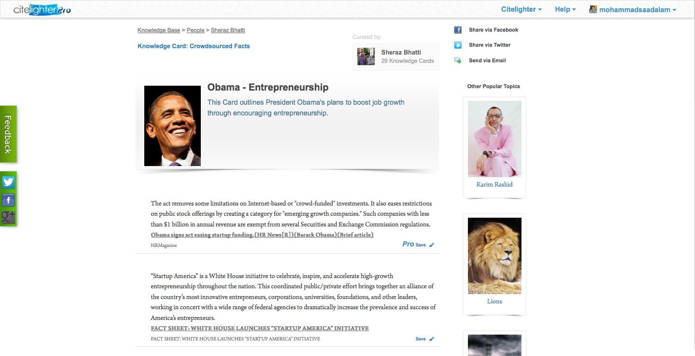 To enhance its information sharing, the startup has recruited 125 of these aforementioned “Knowledge Experts,” which the CEO says are students with high GPAs from highly ranked universities that were subjected to a rigorous vetting process. These student experts curate facts on Citelighter on specific topics, as Citelighter has begun aggregating facts on several thousand of its Knowledge Cards, which can be found by internal search and are being indexed by search engines so that non-users can find them, as well.