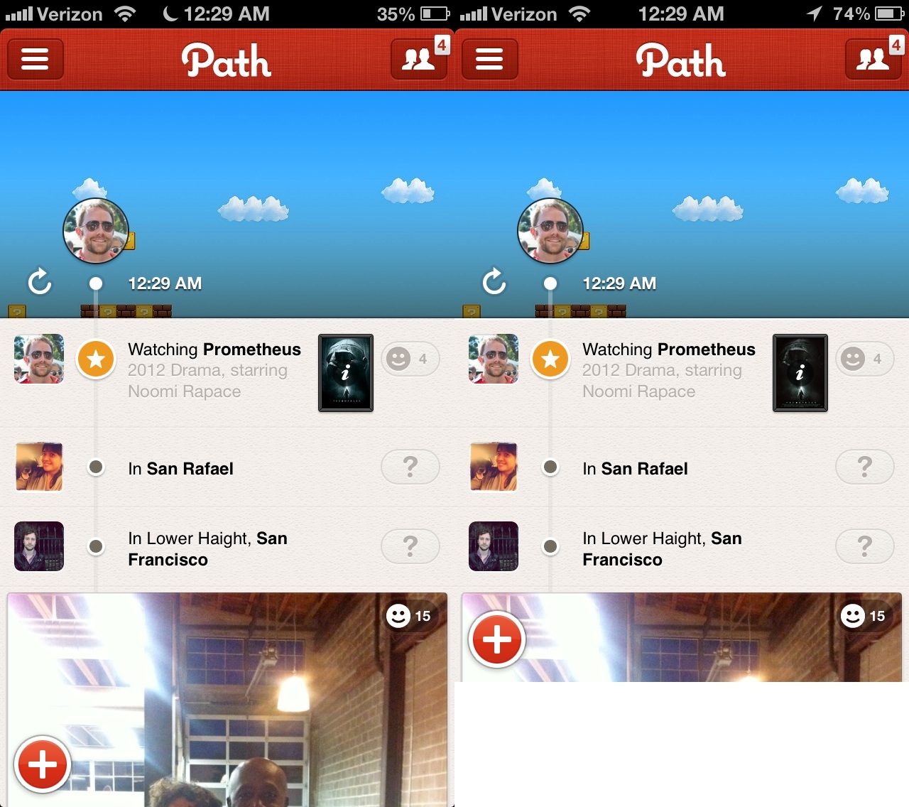 (Below: Path optimized for the iPhone 5 versus on the iPhone 4S.)