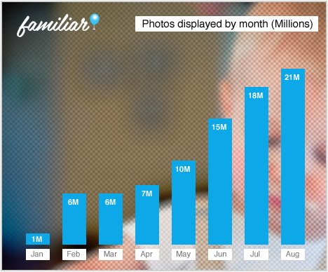 The screensaver is not dead! Familiar, a startup that lets friends and families privately share photos directly to each others’ Macs, PCs, smartphones, and tablets, has been steadily gaining traction following its beta launch last winter. The company just hit a milestone of 21 million photos shared through its platform in the month of August, and is today announcing that it closed a $1.3 million round of seed funding earlier this year.