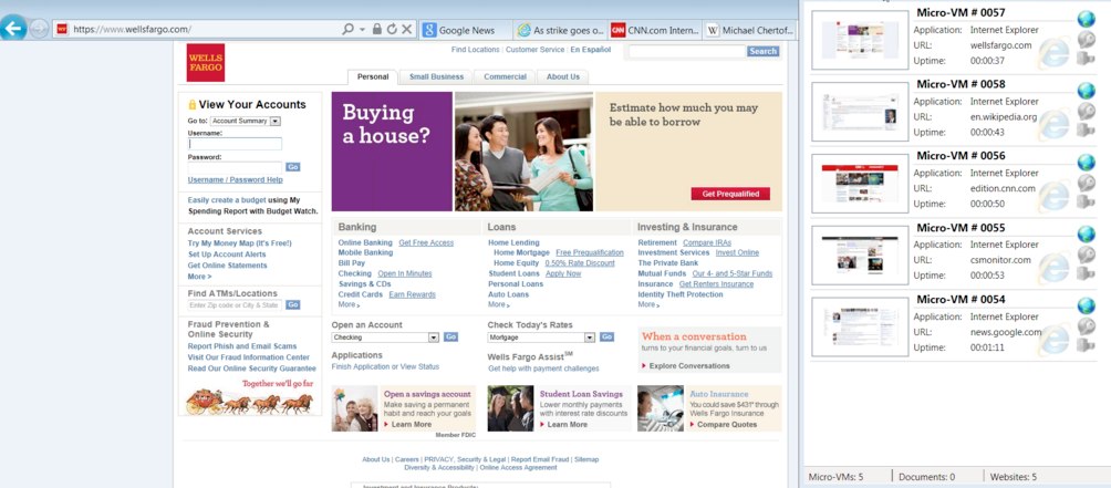 Bromium’s service is designed to make malware and virus protection invisible to the user. Its micro-vm tracks people as they use the web. All the data from the website visit is contained. If someone clicks a bad link, the micro-vm will keep it until the IT administrator views and disposes of it. Micro-vms are automatically discarded when a user completes an untrusted task, such as navigating away from an untrusted web page in Internet Explorer.