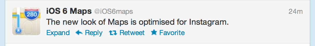 A new Twitter account @iOS6maps is offering a bit of levity by tweeting things that we can assume the Apple Maps team would say.