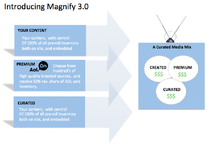 The partnership is a boost for Magnify’s current users, as well, as the content they offer is going to get more diversified in terms of its sources. Through Aol, Magnify will add 40 content sources its curation platform in everything from breaking news and entertainment to health, travel and fashion. The company currently powers more than 90,000 video channels for publishers and brands like New York Magazine, The Week, and Patagonia, which will now be able to offer Aol content in their video channels.