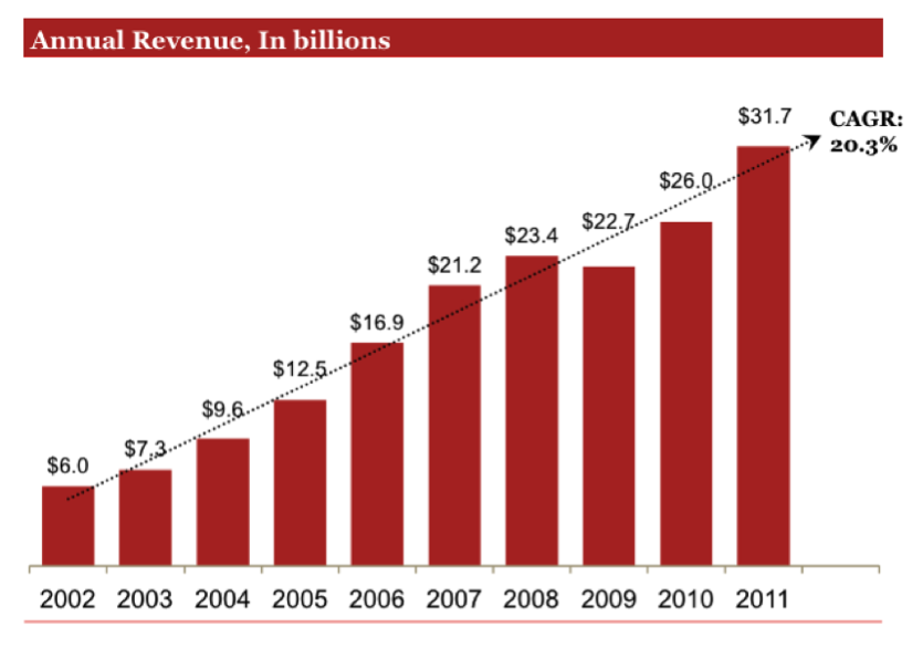 Considering the facts above, it’s generous to say that targeted advertising is even 15 percent of the ad industry’s revenues. In fact, business is booming for the online ad industry: their revenues have increased by 530 percent since 2002, as this figure from their 2011 annual report shows: