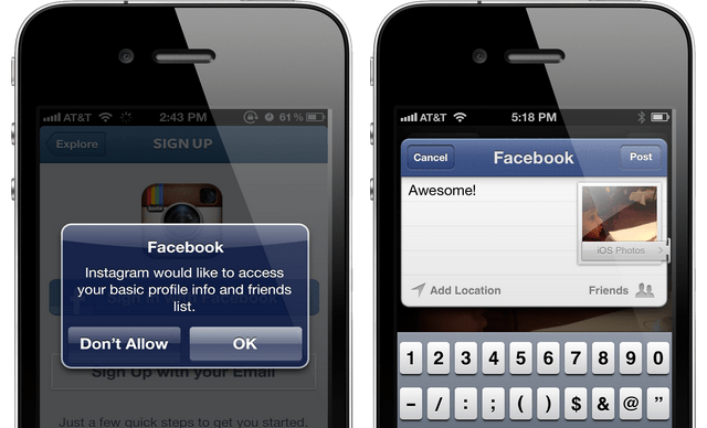 - Native Sharing Sheets – Apps can populate overlaid sharing sheets to let their users post to Facebook with minimum interruption to their experience