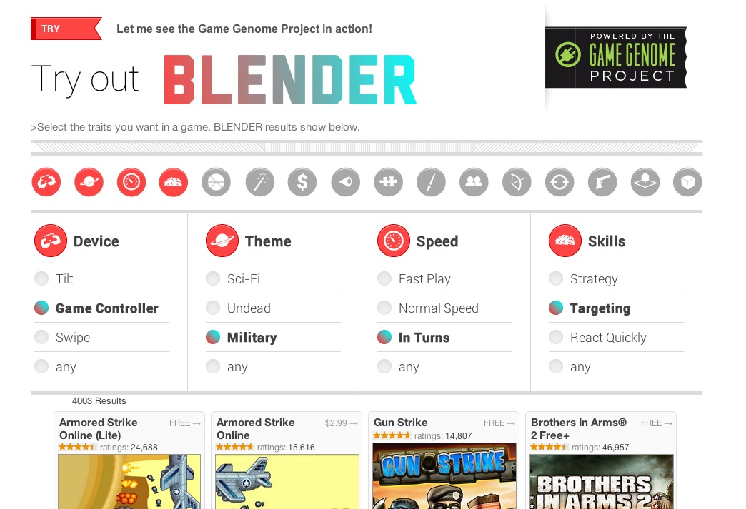 “It’s a new trait-based mobile game discovery tool. Instead of wasting time looking for games based on generic keywords or stale top lists, search using a combination of traits such as “3D Graphics + Play By Tilting + Fast Game Play”. You get a variety of games that are more tailored to what you actually want.”