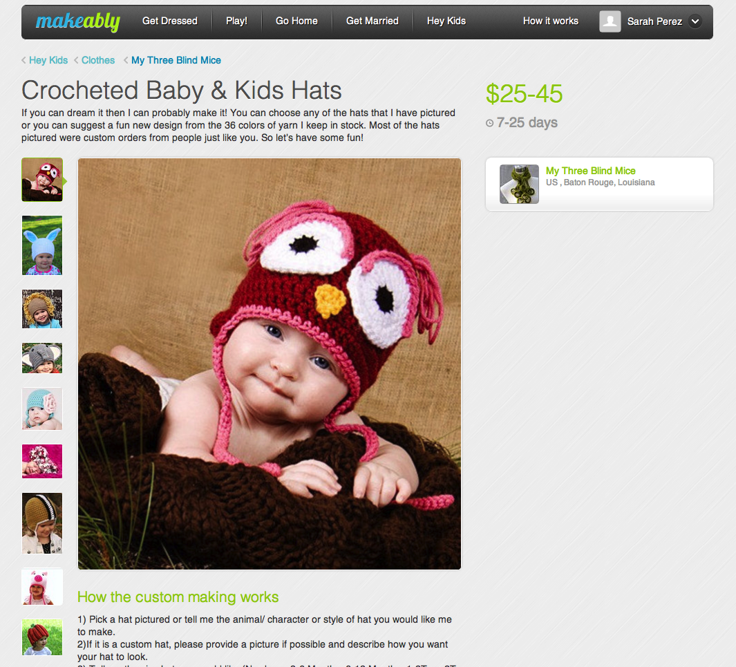On the site, buyers can search through a variety of categories ranging from apparel to kids’ items to household goods and more, and can check out photos of the types of items the makers produce, as well as the prices associated with the custom work. Buyers can then begin to communicate with the maker about what sort of work they want done, and settle on an exact price and due date.
