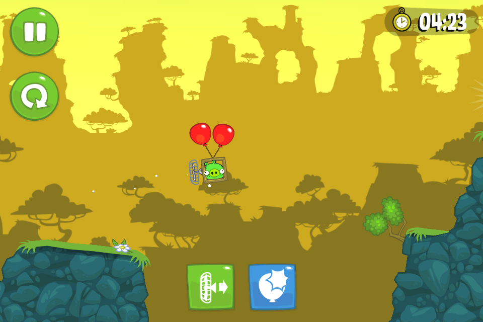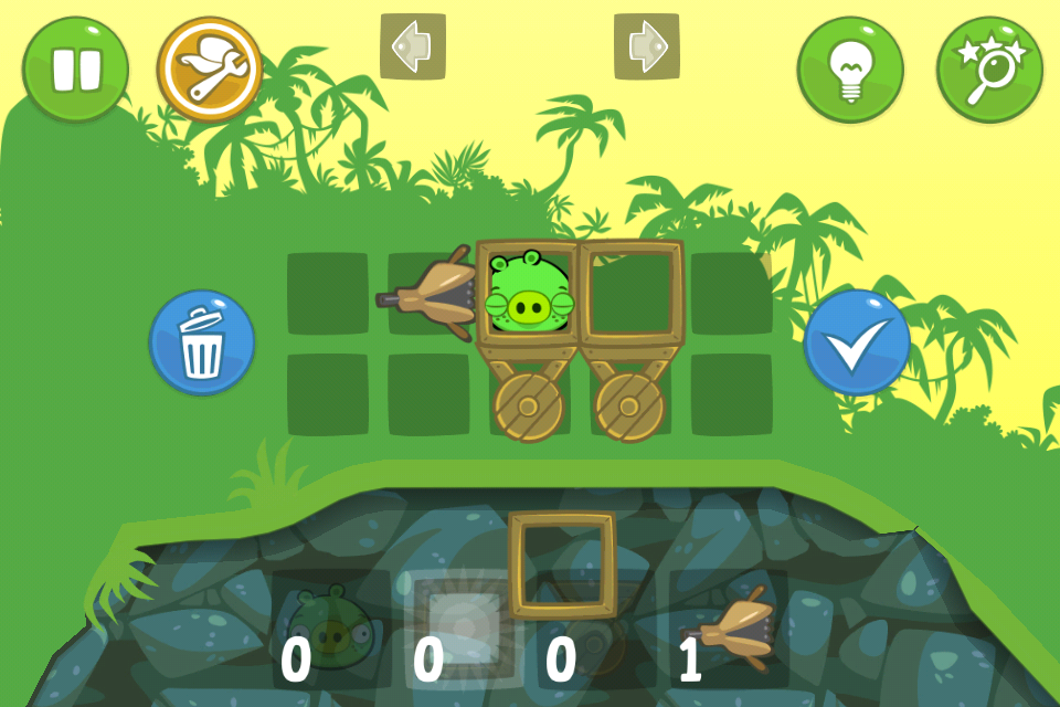 Instead of flinging birds through the sky, or space, you’re actually much more concerned with the pigs. The goal is to reach the finish line of a map by constructing vehicles (both terrain and aircraft) and loading pigs inside.
