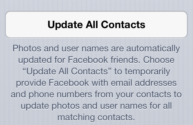 It’s worth noting that this didn’t work in every case; when my colleagues put my number into Contacts and tried updating from the Facebook settings, nothing populated, even though I share my phone number with my friends on Facebook. But it worked more often than not; often enough that it’s worth noting, in the hopes that this loophole will soon closed down completely.