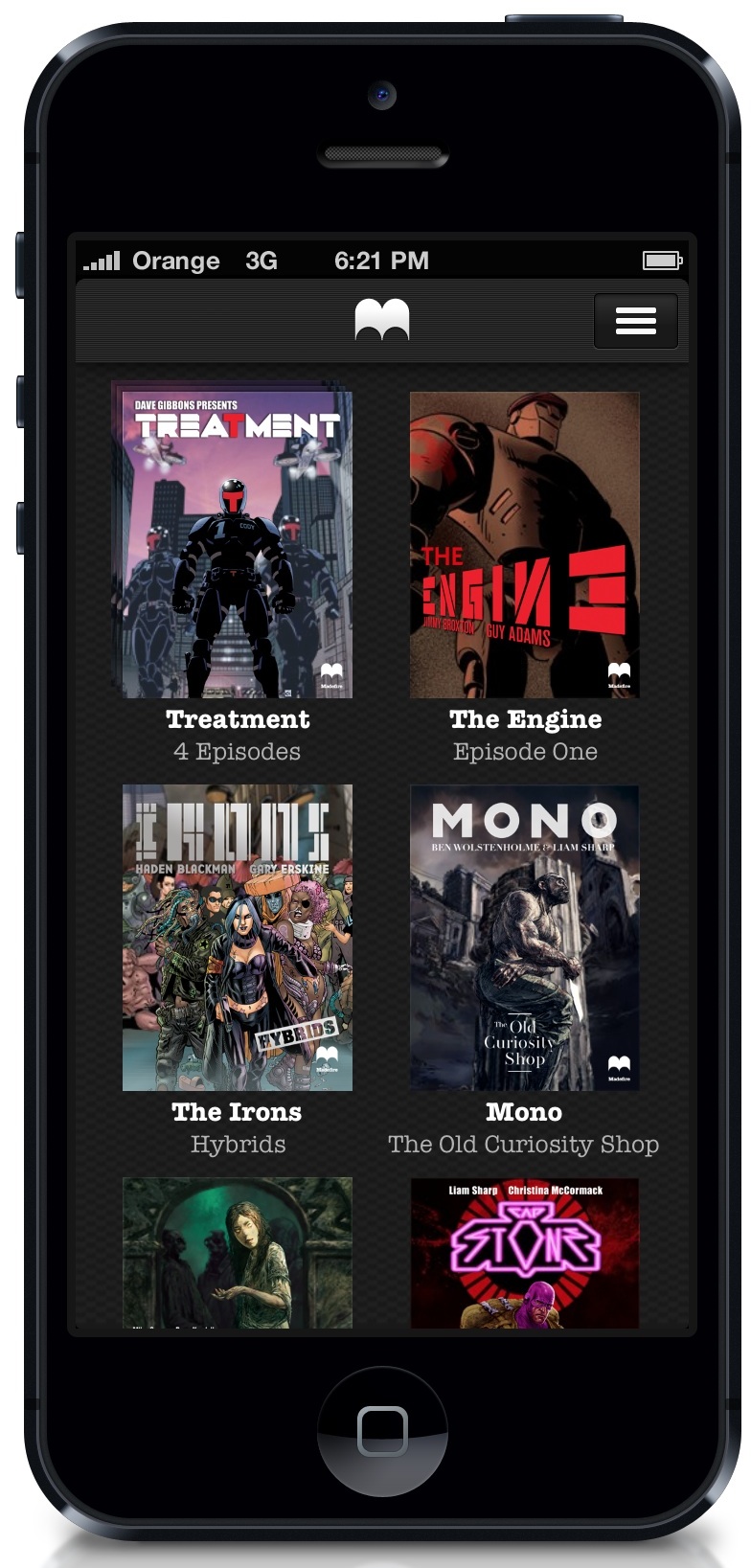 The iPhone app includes six titles, including Treatment, a science fiction action series created by Gibbons. (When Madefire launched in June, the available Treatment episodes were actually written by Robbie Morrison and drawn by various artists, but now the company also has an episode written by Gibbons himself.) All future episodes of Madefire series will be released simultaneously for iPad, iPhone, and iPod Touch, the company says.