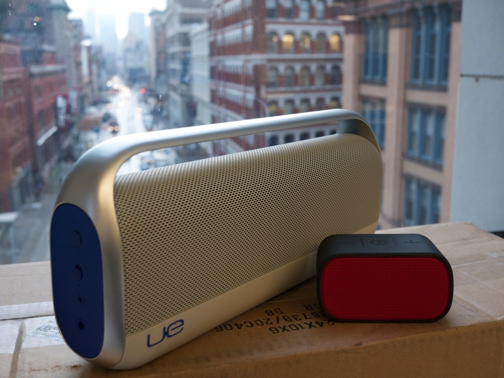 We have a Jawbone Big Jambox in the office. When playing the same song on the two devices, there was no room for discussion. The Logitech UE Boombox is the clear winner, with a much clearer and richer sound than the limited Big Jambox. The Boombox is much bigger, but $50 cheaper than the Big Jambox. Picking Logitech’s speaker is a no-brainer if you are not constrained by size.