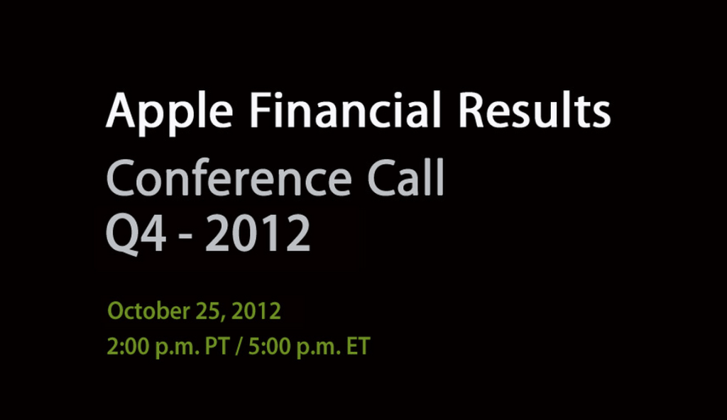 Apple is holding its fourth quarter conference call on October 25, according to an announcement from the company. The call will take place at 2:00 P.M. PT/5:00 P.M. ET, and will provide another early glimpse into how the iPhone 5 is doing since the quarter ended in September.