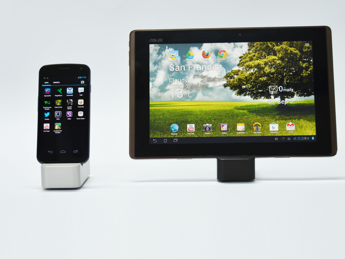 I noticed it at a booth for a cloud services startup, and was immediately intrigued by its solid aluminum construction. It looked like a dock that was immovable, implacable, and designed to stand the test of time. And after going in for a closer look, it turns out that’s exactly what it was, but also with a unique, modal twist that means it can be used with just about any gadget out there.