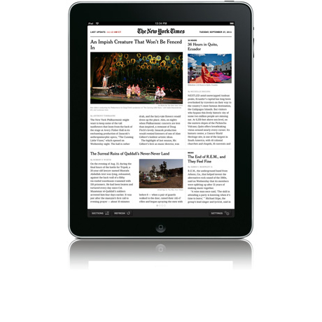 The New York Times this morning announced a new HTML5 web app for iPad, rounding out their lineup of web and tablet products for digital subscribers. The Times is soliciting feedback from its users about the app and its features, which suggests that it’s looking at this as a way to experiment with a non-native delivery method, but isn’t quite sure about how consumers will respond.
