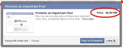 After you publish a post, a Promote button will let you pay to bump up its rank in the news feed — making it appear both higher in the feed, and to a larger portion of your friends. Unpromoted posts are typically only seen by 12-16 percent of your friends.