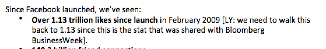 Facebook has also shared a number of key metrics with users along with the announcement, including 1.13 trillion Likes since its 2009 launch (note that this is actually probably higher, since the official press document contained a note accidentally left in from an editor about rolling back the number because of info shared previously with Businessweek), 140.3 billion friend connections, 219 billion photos uploaded, 17 billion location-tagged posts and 62.6 million songs played some 22 billion times.