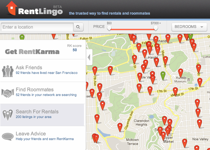 So RentLingo decided to use social networking to make the rental process less of a pain in the ass and help landlords find great tenants and renters find the best apartments. To do that, the startup aggregates info from the major listings players and uses Facebook’s Open Graph to give users social context as they search for apartments. It presents this all via a dynamic map UI, giving listings more of a localized feel and allowing you to see what friends have lived in a particular area and reach out to them (within the app) to ask questions.