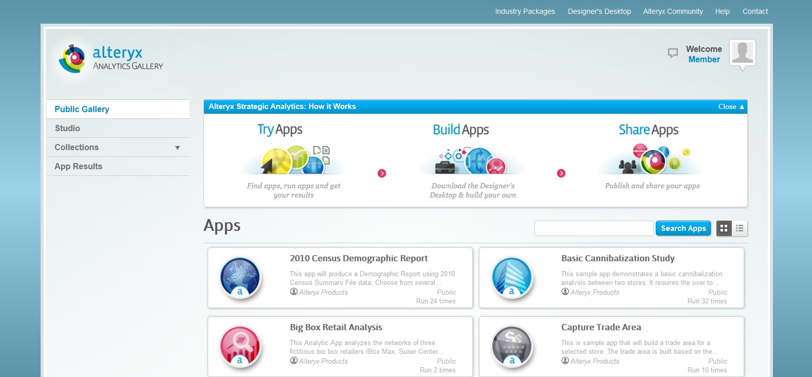Alteryx has opened a big data-analytics apps studio for people who do not necessarily have a deep knowledge of data science. The service is available as part of Alteryx 8.0, the analytics provider’s latest release. The intent is to make data analytics as accessible as a consumer application makes its service.