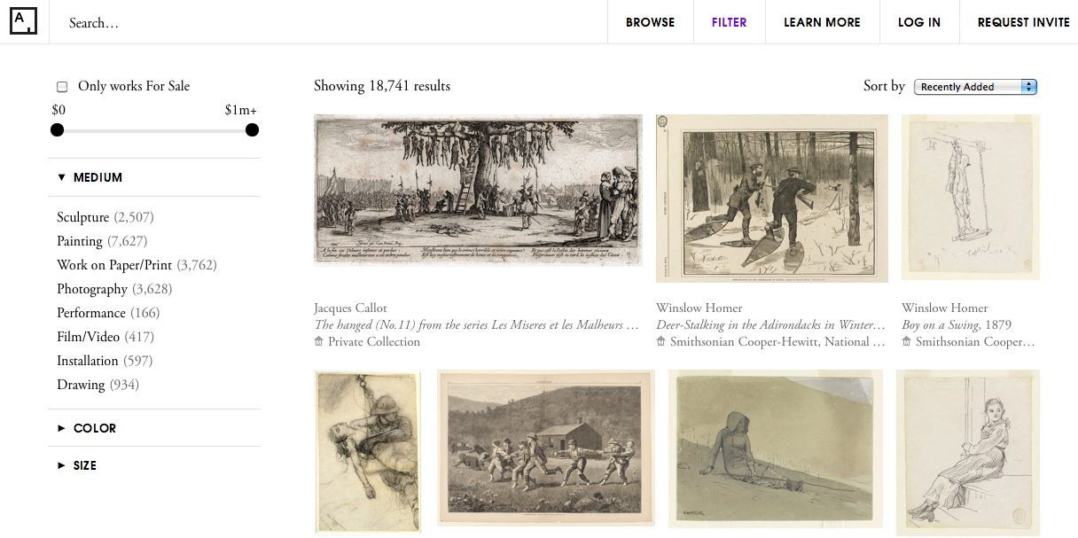 This week, after two years of development and beta testing, Art.sy finally opened its doors to the public and announced its partnership with over 50 art museums, estates, non-profit institutions and more than 275 art galleries. The result is a free platform that allows users to discover, learn about and peruse digital reproductions of over 20K works of art provided by Art.sy’s roster of partners.