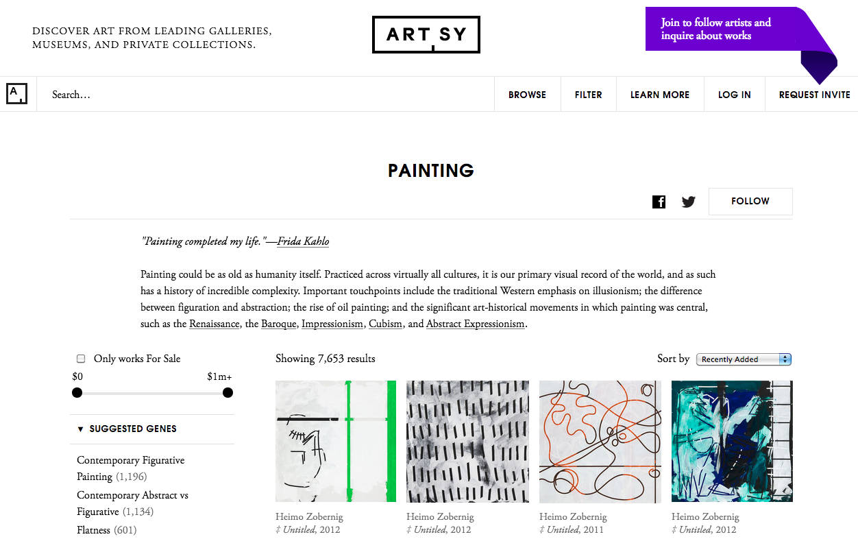 Art.sy’s conception is much the same. Using its algorithmically identified art “genotypes,” the startup offers a more refined search mechanism for artwork than you’re likely to find anywhere else on the web, with the ability to break down discovery based on particular colors, patterns, schemes, and even sensations.