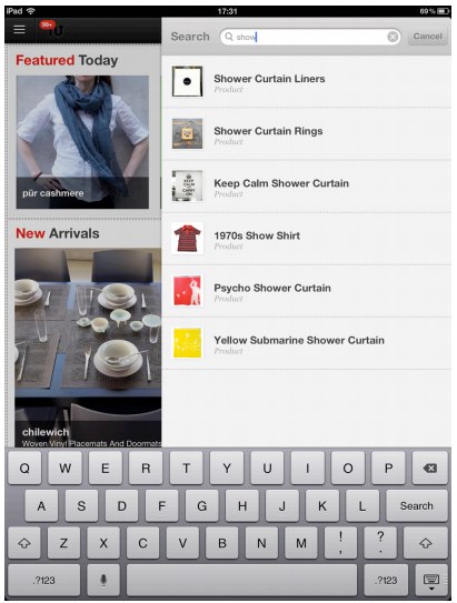 Navigation has also been redesigned for a more seamless browsing experience, and you can search by a number of categories, including type of product, color and price. You can also search for the site’s 10,000 products. As Goldberg tells me, the entire app was reimagined for just iPad users.
