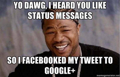 So, I don’t hide the fact that I really appreciate Google’s approach to social with Google+. One of my favorite features is actually the lack of a particular feature, and that’s cross-posting. You see, Google+ hasn’t exposed write-APIs for developers to start pumping things into the streams of your circled friends. And that’s a good thing as far as I’m concerned.