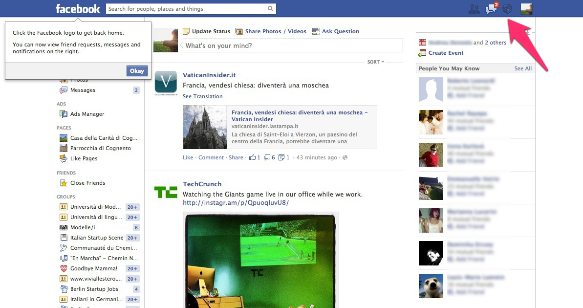 A few tipsters are reporting to TechCrunch that they’re seeing a brand new layout for the navigation bar on Facebook’s website. The new layout shows a complete swap for where the notifications, friend requests and messages sit.