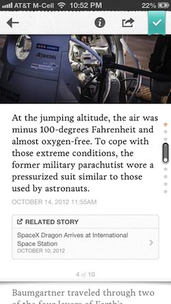 As Galligan pointed out to us in April, Circa isn’t a news aggregation play like Techmeme or Digg, it’s something bigger. By bringing on actual journalists with an eye for news, Circa is able to fill the app with things people want to read, in a way that they can read it quickly and on the go. While I’m sitting and waiting for a train to the city or at the airport at my gate, I just want “the facts.”