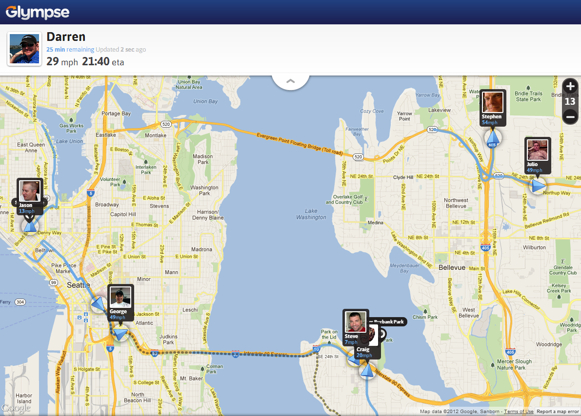 According to CEO Bryan Trussel, the changes were brought on by a combination of user feedback, analytics, and a bit of intuition. “The main thrust in the new version of Glympse was moving from solely one-way sharing – me letting you know where I am – to mutual sharing, which makes it easier to share location two ways or with a specified group,” he explains. “Both of these were possible with the old app, but too cumbersome. For example, now with Request-A-Glympse, it’s two clicks for me to ask where you are, and a single click to respond.”