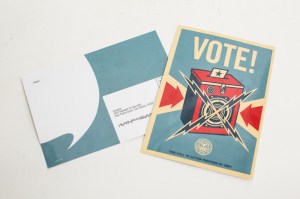 Mobile photo-printing and greeting card startup Sincerely wants to encourage users to vote this election season, and to do so, it has partnered with artist Shepard Fairey on the creation of an exclusive new card. Best known as the creator of the Barack Obama “Hope” poster, Fairey’s new card has a similar style and color palette, but offers a non-partisan plea: it just says “Vote!” To get users to send these cards to friends, Sincerely is now giving away 100,000 of them for free from now until the election on November 6th.