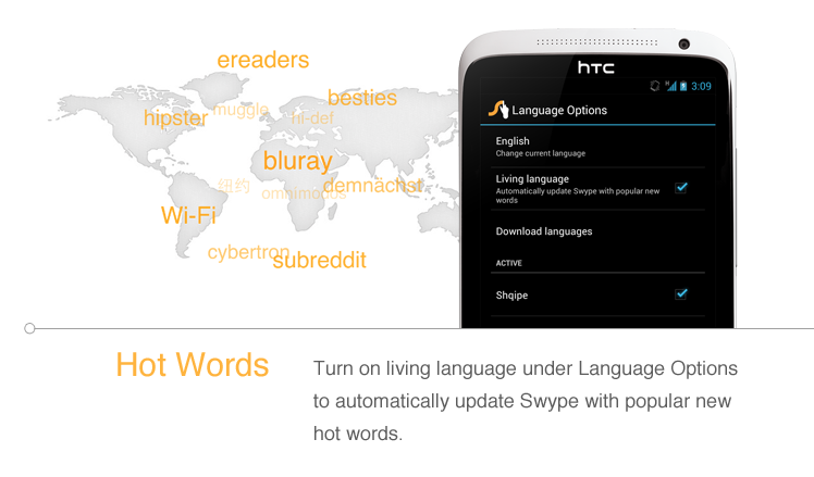 Nuance-owned Swype, which makes virtual keyboards for mobile devices, has released a new version (v1.3) of its software which adds the ability to backup and sync your personal dictionary across multiple mobiles devices — so you can take your slang with you. It also now offers dictionary updates for relevant trending ‘hot words’ — so you can take other people’s slang with you too. Fortunately the latter is an opt-in feature.