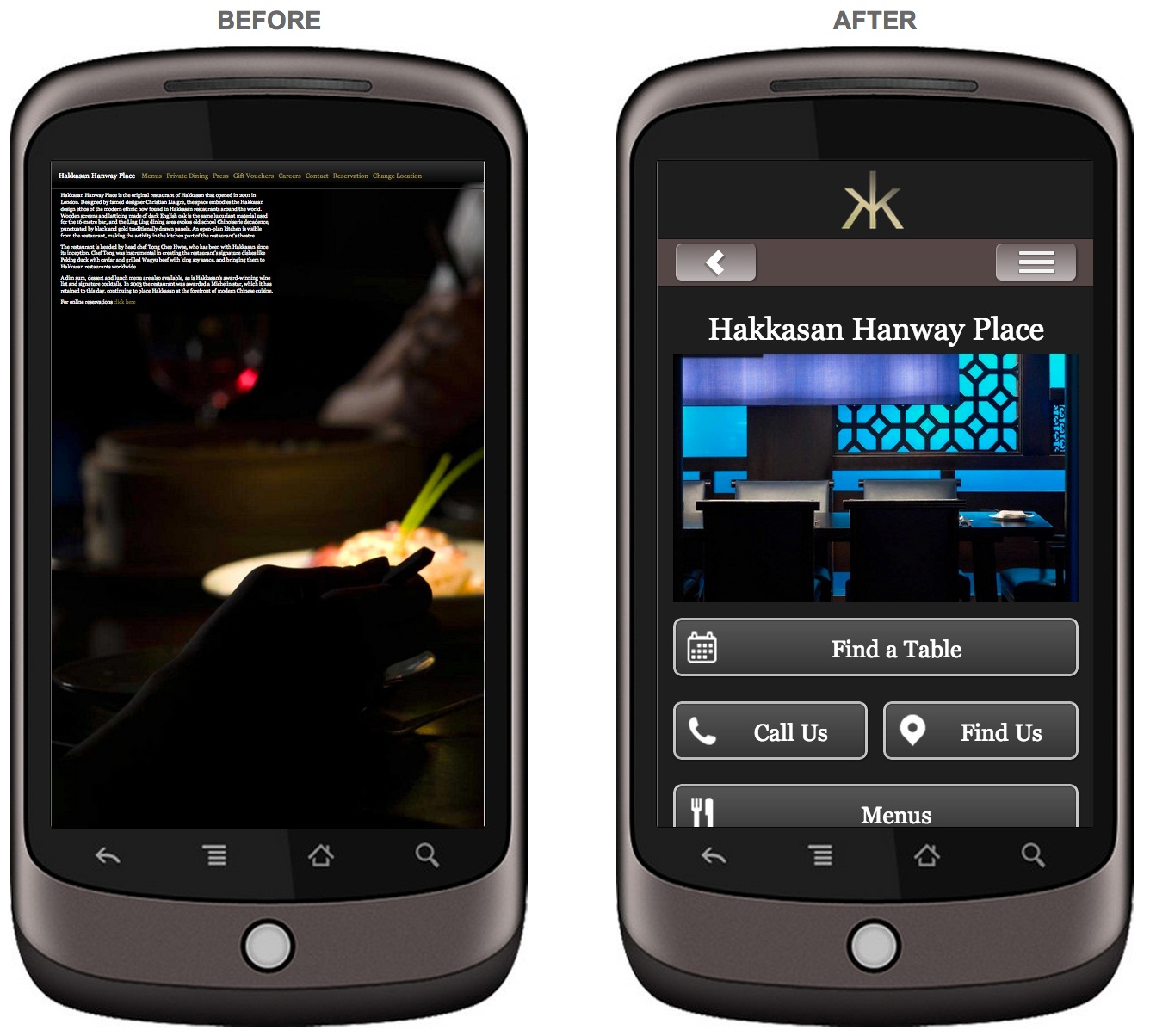 The service streamlines restaurants’ websites to foreground booking information — as seen in these before and after images below