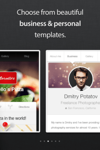 Currently, the service allows business owners to use an iOS app to create their mobile site, choosing from a gallery of included templates to do so. Users can turn on or off the features they need – like photo galleries, a blog, an “About” page and more. They can also tap to add new pages on the fly, and the interface makes it really simple to add key items like Store Hours, a logo, or social sharing buttons, for example. Everything about the app has been designed with a mobile-first mindset, and is optimized for a small screen.