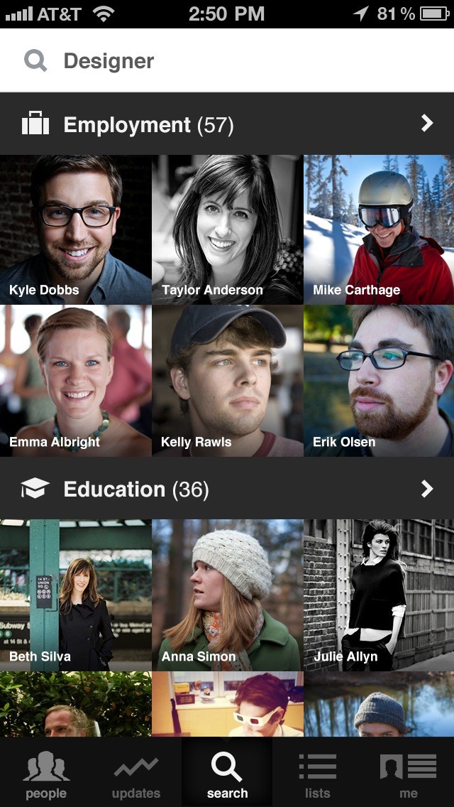 He says that this is because the relationship algorithms are now three times more accurate, by monitoring mutual connections and communication frequency. The search, meanwhile, aims not just to give you, for example, people who might be relevant to the word “designer,” but also answer some of the “why” behind that by grouping the results; meanwhile Brewster uses geolocation to identify where you and your contacts are for results in your vicinity.