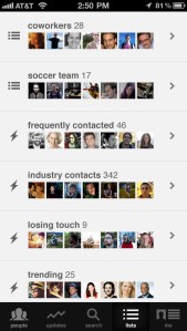 The app itself, if you have not used it yet, is built with the idea of taking a new approach to the conundrum of managing contacts across different social networks, your phone and your email. Sourcing whichever of these you choose to activate in the app, it aggregates all the contacts you have made, merges them and uses algorithms to intelligently figure out connections based on those other users’ activity. It then becomes a centralized address book from which you can then access those other networks.